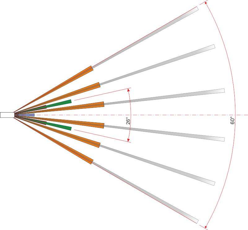 • Форма зоны обнаружения - веерная