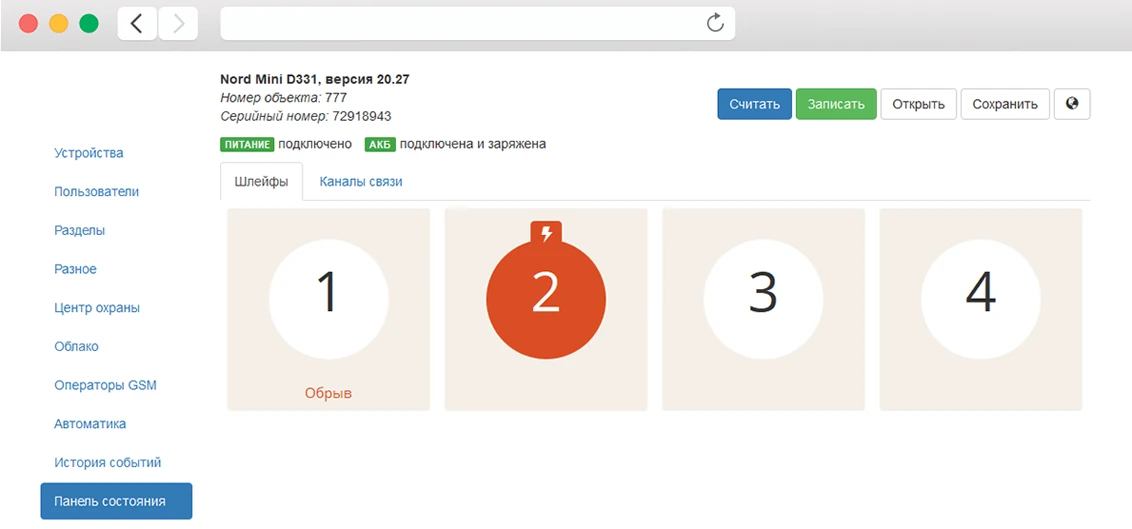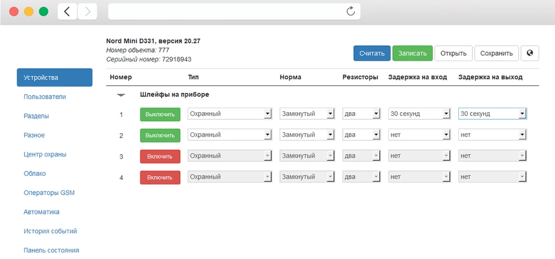 • Особенности подключений: за счет проводных шлейфов (настраивается в конфигураторе)