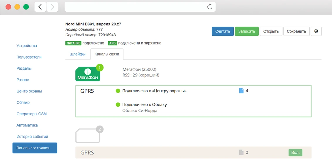 • Резервное питание: АКБ 2.2 А*ч, 3.7 В