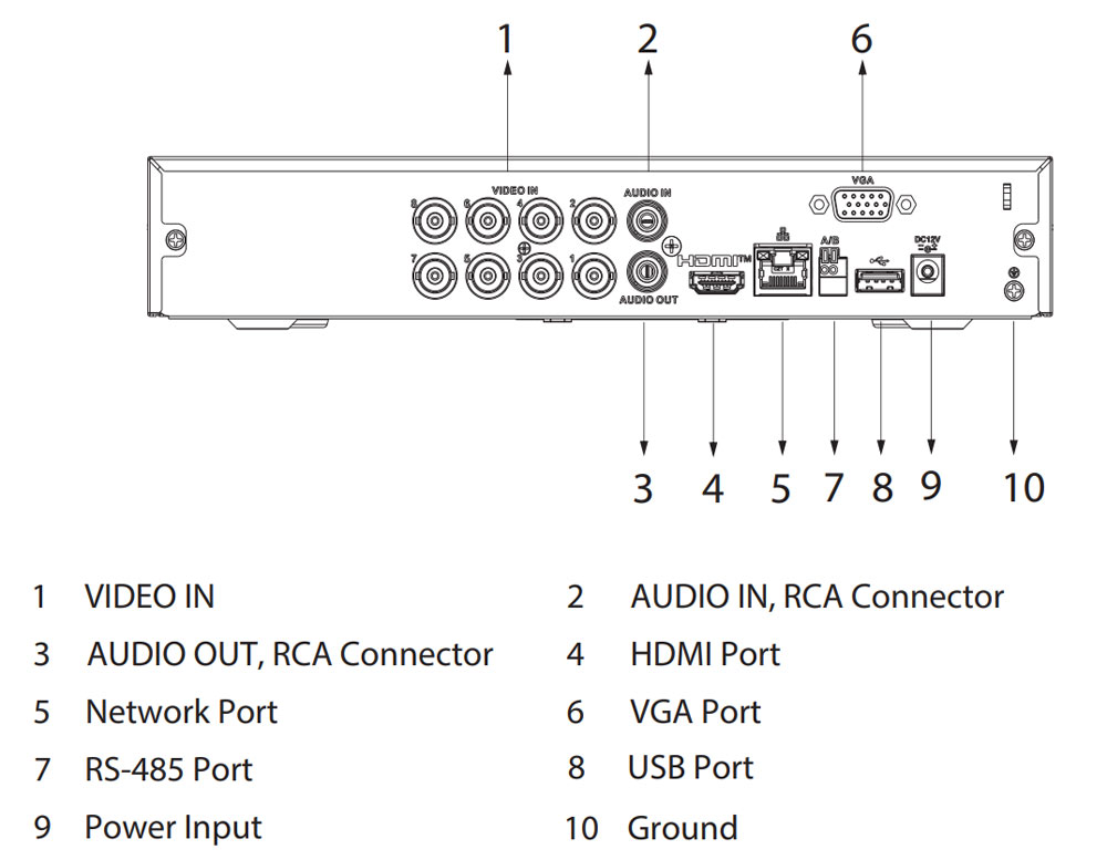 • Аналоговые каналы: 8 BNC (автоматическое определение типа видеосигнала по умолчанию, возможность выбора вручную HDCVI, AHD, TVI и CVBS)
