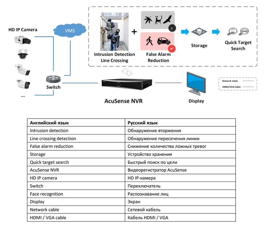 • Снижение числа ложных срабатываний: Видеоаналитика для распознавания людей и ТС в целях снижения числа ложных тревог: до 4 каналов, 2 Мп (H.264 / H.265); всего до 12 правил
