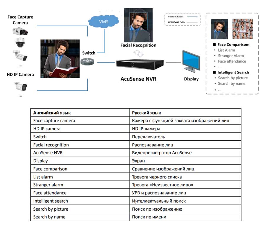 • Производительность детекции лиц и аналитики: 1 канал, захват изображений лиц (HD IP-камера, до 4 Мп, H.264/H.265)