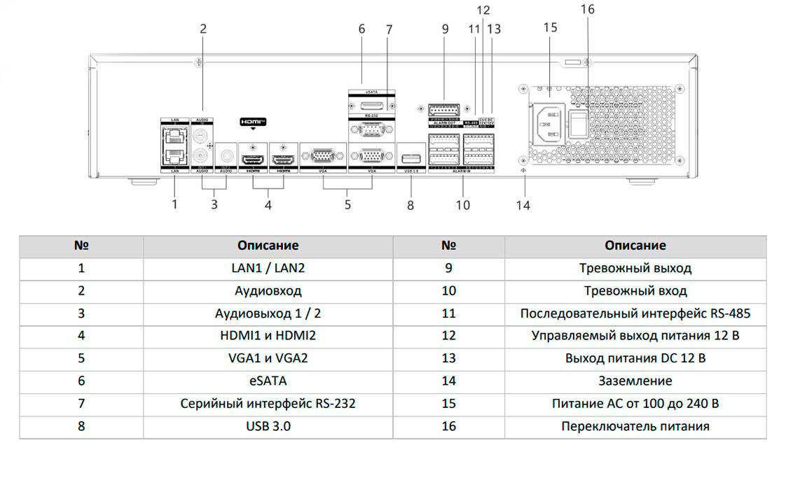 - ИИ выкл.: 2 канала @ 12 Мп (30 к/с) / 3 канала @ 8 Мп (30 к/с) / 6 каналов @ 4 Мп (30 к/с) / 12 каналов @ 1080p (30 к/с)