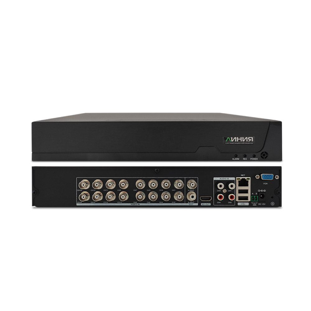 «Линия XVR 16S» – видеорегистратор для организации профессиональной системы видеонаблюдения на любых объектах. Устройство работает с пятью форматами камер: AHD, TVI, CVI, CVBS, IP.