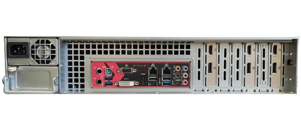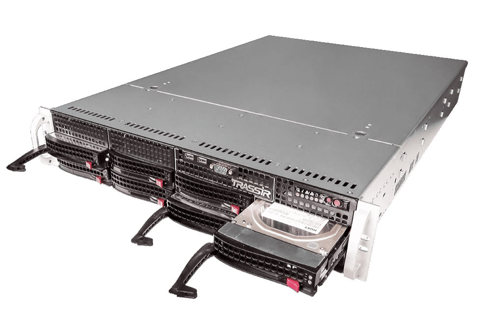 TRASSIR NeuroStation рассчитан на подключение до 128 IP-камер — без ограничений по разрешению и скорости трансляции. Поддерживает кодеки Н.265+, Н.265, Н.264, MPEG4, MJPEG. Принимает и обрабатывает изображения с других серверов TRASSIR (Offload-аналитика). Оборудован тремя независимыми видеовыходами — DisplayPort, D-SUB и HDMI — для подключения трех мониторов (в зависимости от модификации количество видеовыходов может меняться). На передней панели расположены два порта USB 2.0, на задней — четыре USB 3.0 и один USB 3.1, один USB 3.1 type-C. На борту два сетевых порта RJ-45, восемь SATA-интерфейсов для подключения HDD, PS/2 — для клавиатуры.
