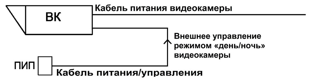 • внешнего управления режимом «день/ночь» видеокамеры (при наличии у неё данной опции);