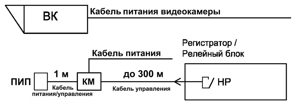 • внешнего управления режимом «день/ночь» видеокамеры (при наличии у неё данной опции);