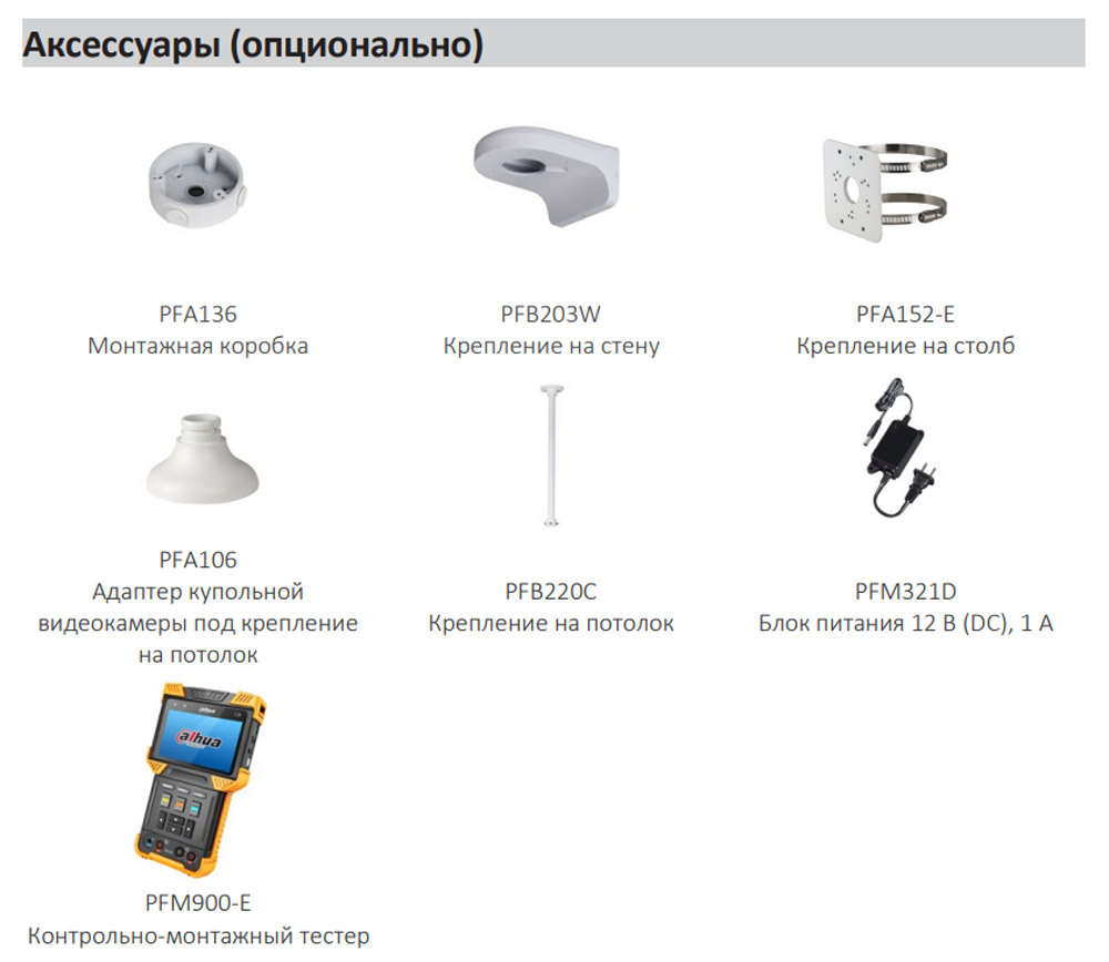 IP67: Видеокамера прошла серию строгих испытаний на стойкость к воздействию влаги и пыли и способна работать 30 минут при погружении в воду на глубину 1 м. Широкий диапазон напряжений: Для входного напряжения видеокамеры допускается отклонение ±30%, благодаря чему она хорошо подходит для уличного применения с нестабильными условиями электропитания.