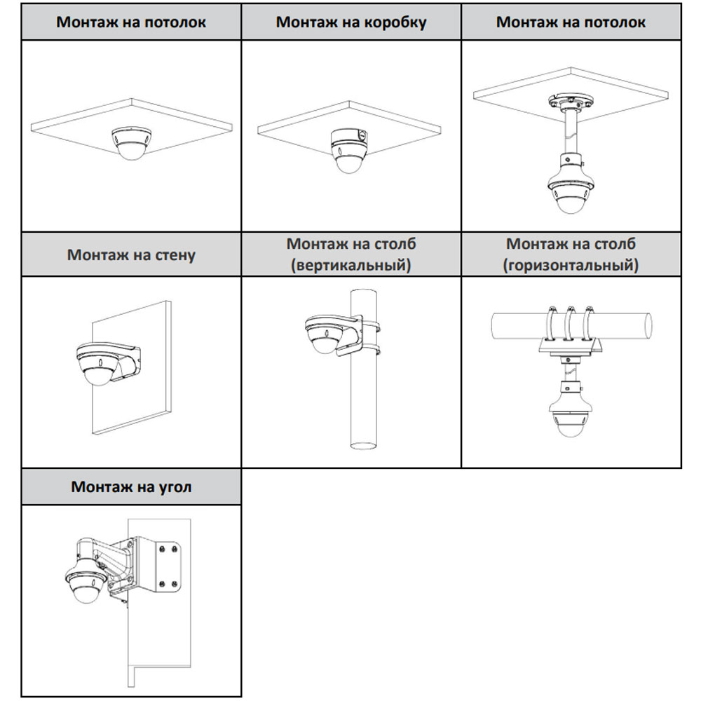 • Настройка по осям: Поворот: 0° ~ 355°. Наклон: 0° ~ 65°. Вращение: 0° ~ 355°