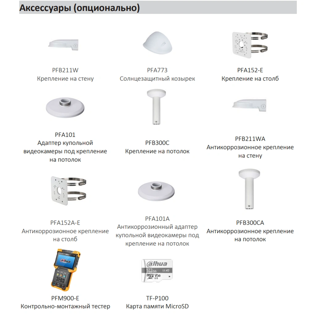 - Совместимость с платформами Dahua Smart PSS, DSS, DMSS, мобильные приложения iOS/Android.