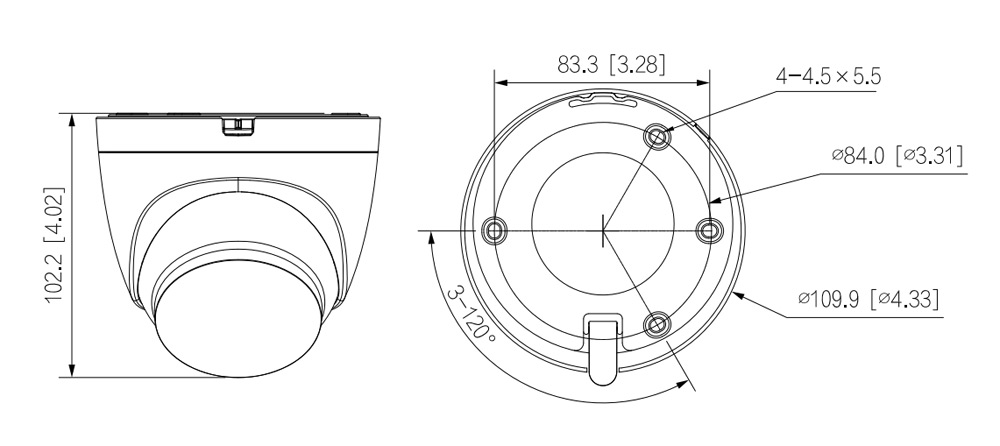• Настройка по осям: Поворот: 0° ~ 360°.Наклон: 0° ~ 78°. Вращение: 0° ~ 360°