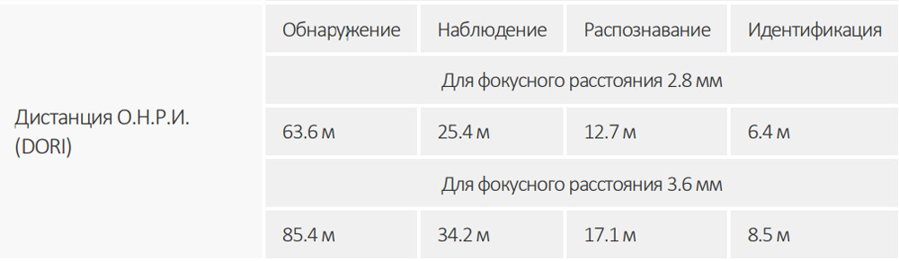 • Фокусное расстояние: 2.8 мм / 3.6 мм