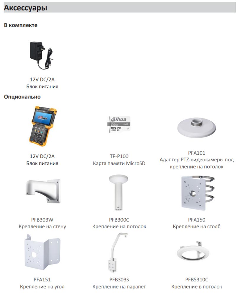 • Дополнительное оборудование для видеонаблюдения