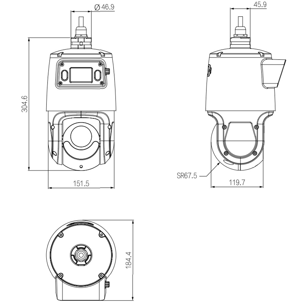 - 25 Вт (максимальная, при включении подсветки, световой и звуковой сигнализации, PTZ-управления и нагревателя)