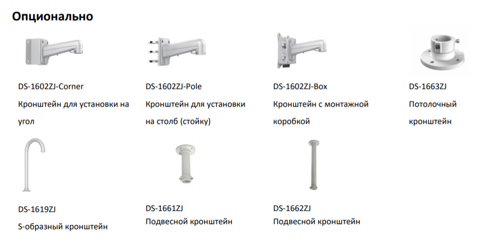 • В комплекте DS-1602ZJ Кронштейн для установки на стену