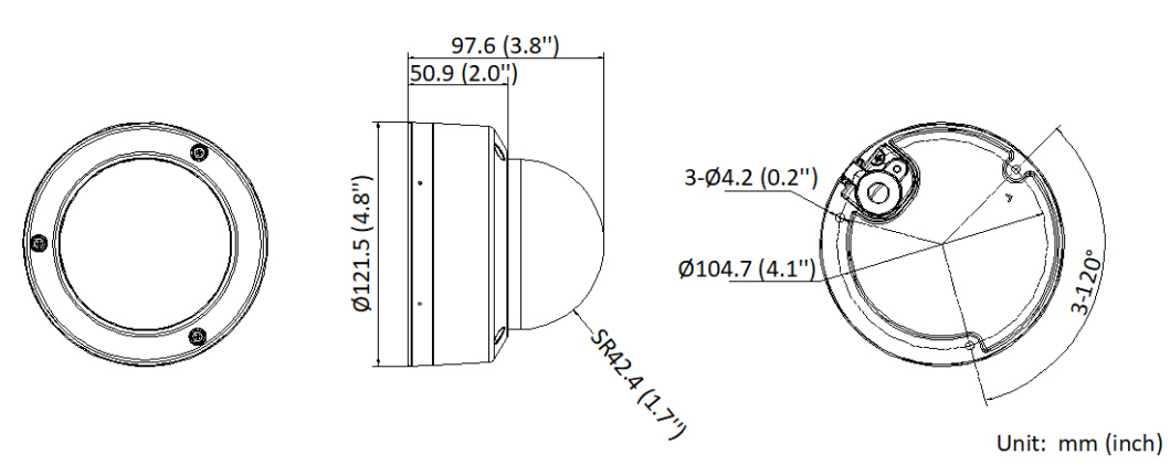 • Размеры: Ø 121.5 × 97.6 мм (Ø 4.8 × 3.8″)
