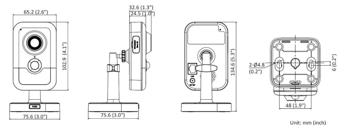 • Размер камеры: 102.9 × 65.2 × 32.6 мм (4.1 × 2.6 × 1.3″)