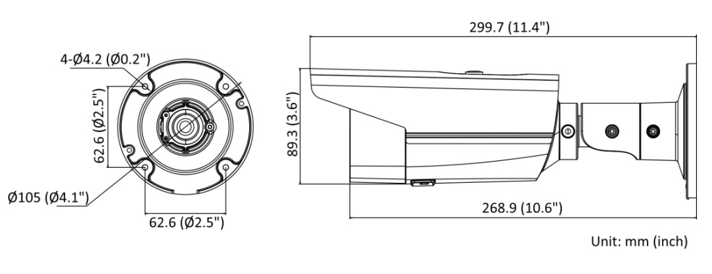 • Материал камеры: Корпус из алюминиевого сплава; Защитный козырек, крышка ИК-подсветки: пластик