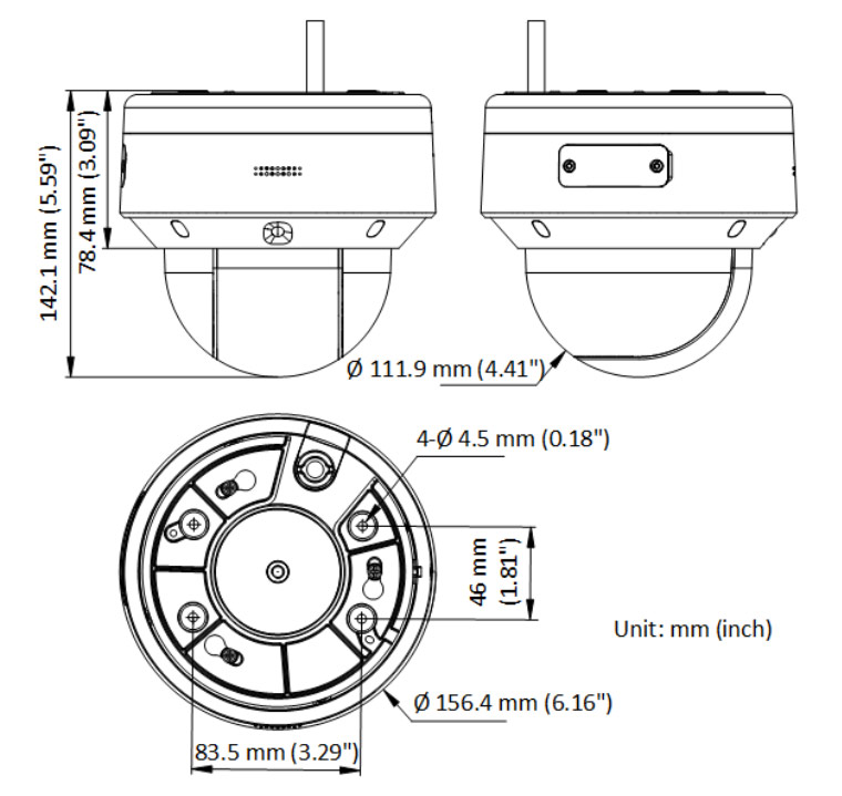 • Размеры: Ø 156.4 × 142.1 мм (Ø 6.16 × 5.59″)