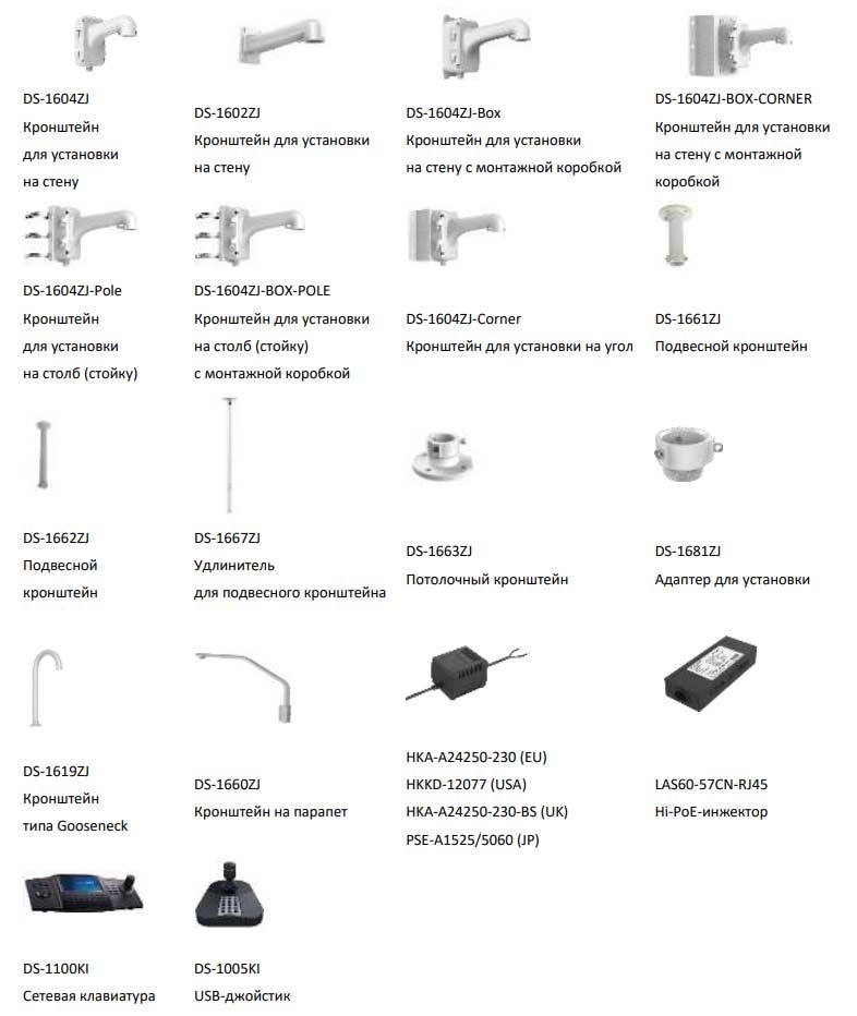 • Дополнительное оборудование для видеонаблюдения