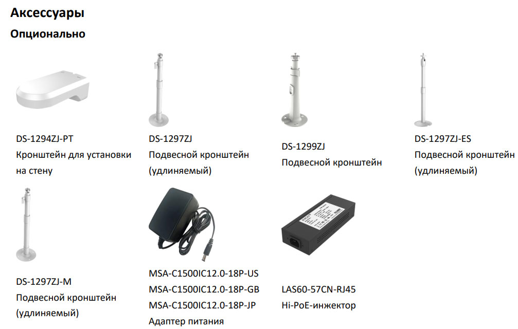 • Питание: DC 12 В, макс. 9.2 Вт; PoE: (802.3 af)