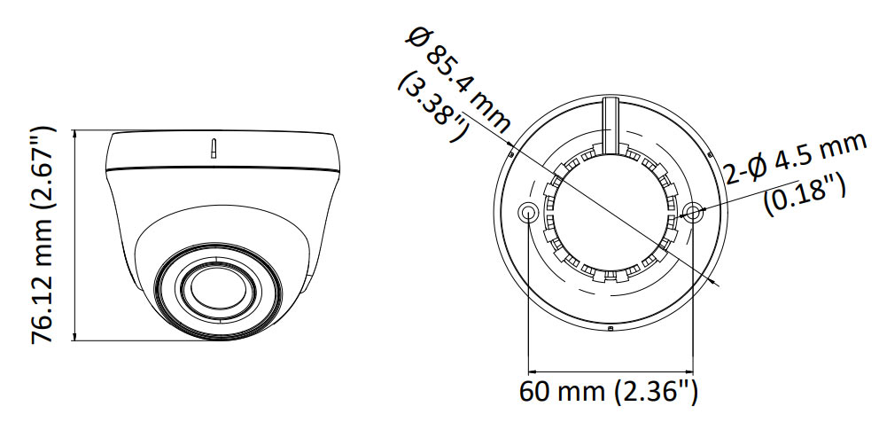 • Горизонтальный угол обзора: 106° (2.8 мм), 82° (3.6 мм), 51° (6 мм)