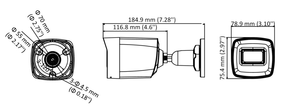 • Размеры: 78.9 × 75.4 × 184.9 мм