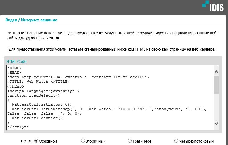 Видео с данной камеры может встраиваться на веб-страницы для организации онлайн-трансляции, для этого в одном из пунктов меню доступная для копирования автоматически сгенерированная html ссылка.