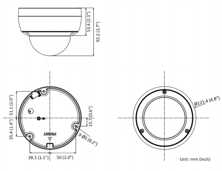 • Размер камеры: Ø 121.4 × 92.2 мм