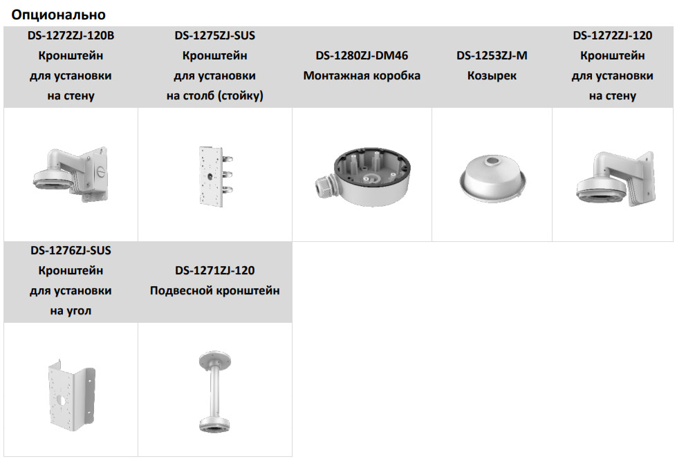 • Дополнительное оборудование для видеонаблюдения