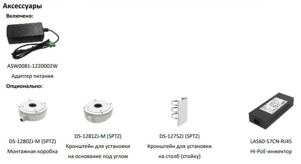 • Сетевой интерфейс: 1 RJ45 10 M/100 M Ethernet; PoE (802.3at, класс 4)