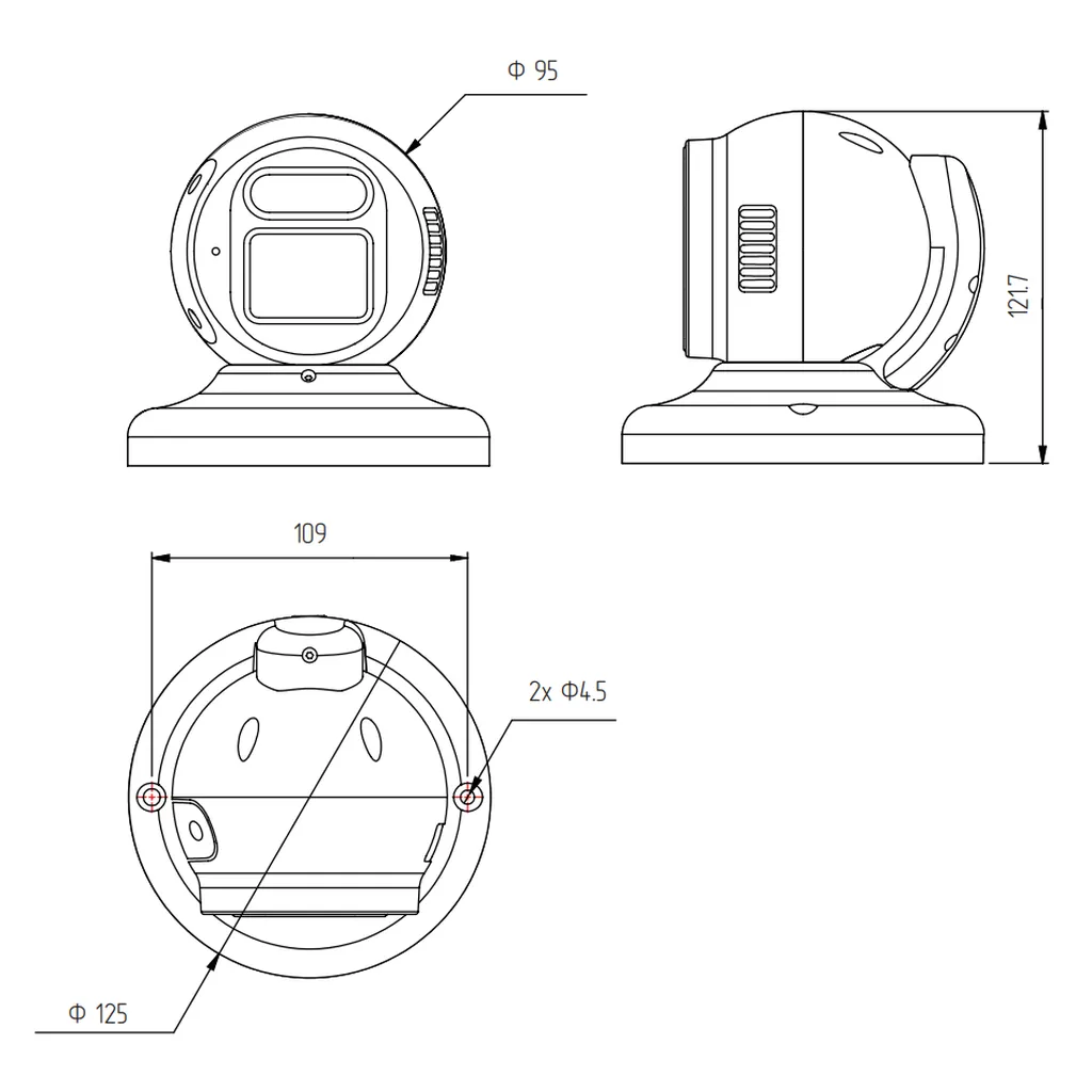 - Габаритные размеры: 125 (Ф) × 121.7 (В) мм