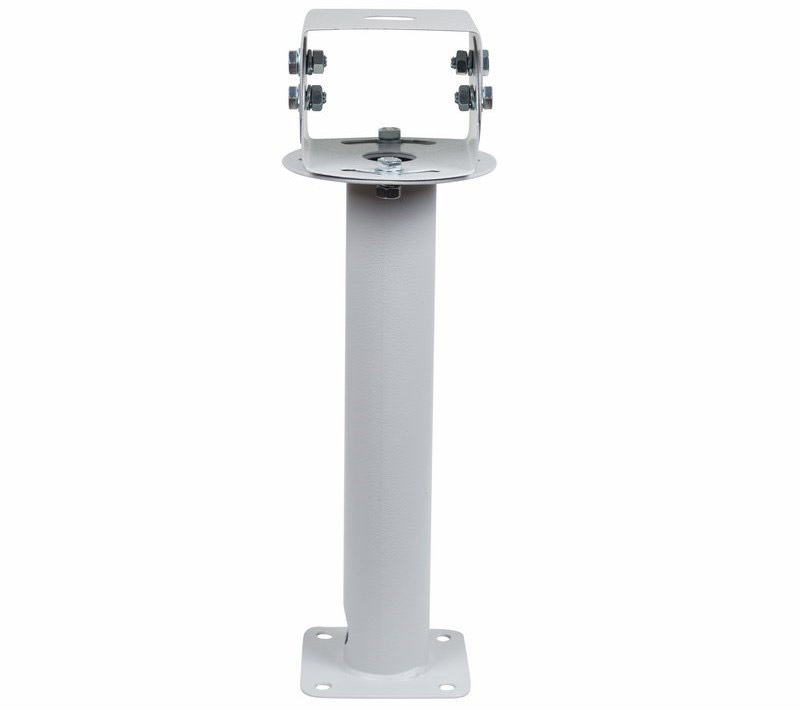 Как правило, на кронштейн монтируются корпусные видеокамеры или гермокожухи, где размещаются бескорпусные камеры видеонаблюдения и вспомогательные устройства. Поворотная площадка позволяет установить камеру в нужном положении.