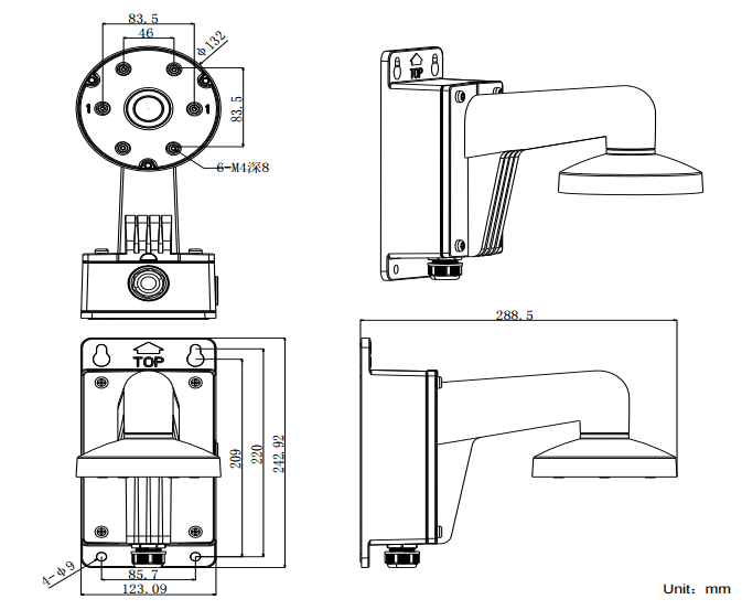 Стена, на которую устанавливается кронштейн, должна выдерживать вес предполагаемой камеры и кронштейна в троекратном размере.