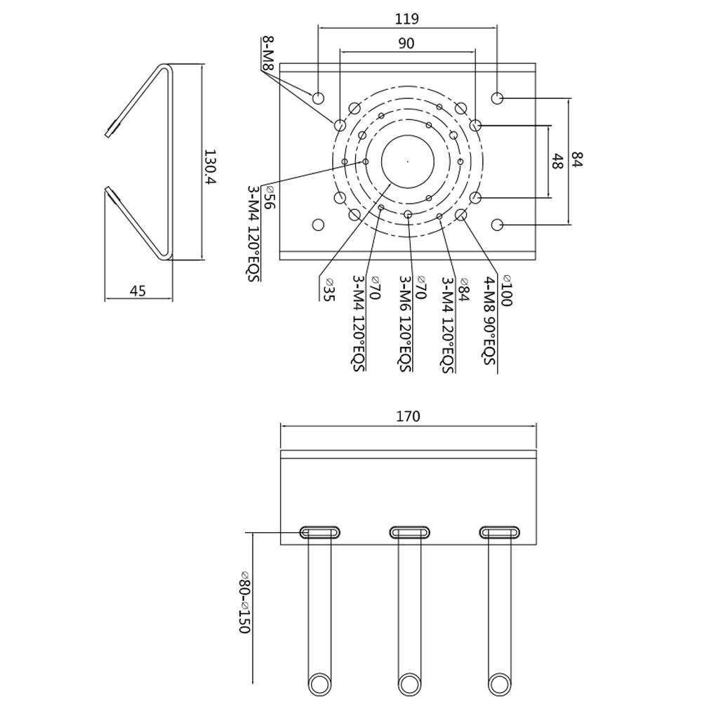• Диаметр столба: Ø 80 мм ~ 150 мм