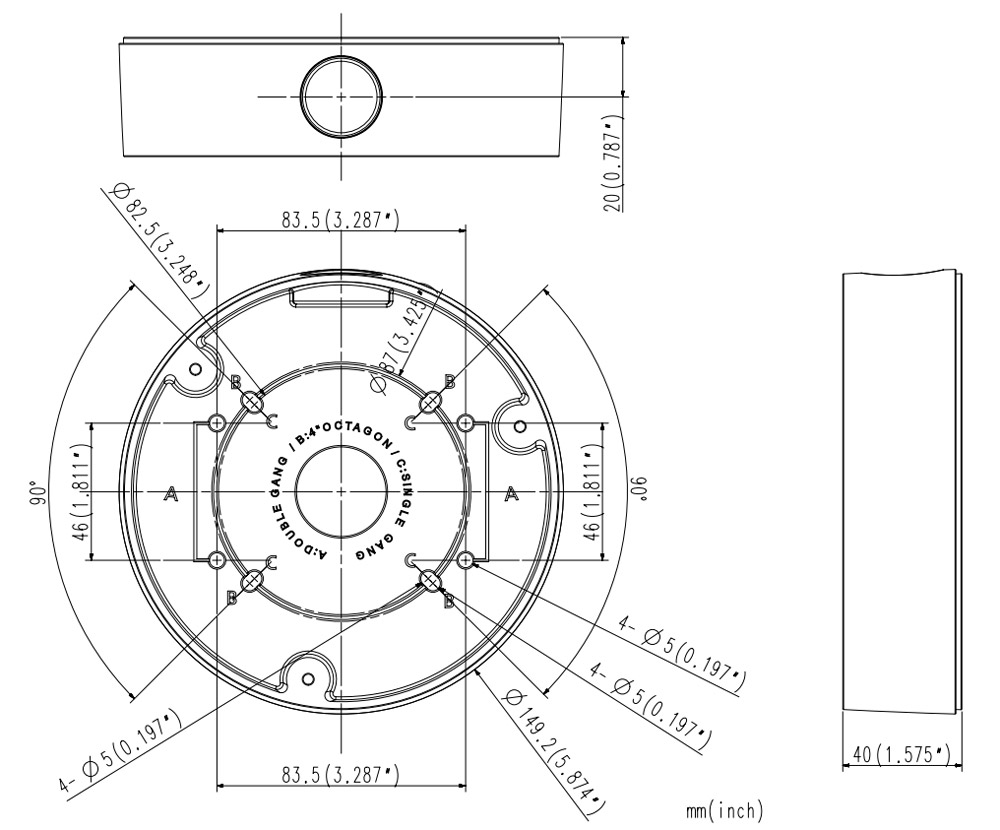 Кронштейн (монтажная коробка) для монтажа камер PNF-9010R/9010RV/9010RVM, SNF-8010/8010VM