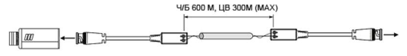 • Передача чѐрно-белого видеосигнала на расстояние до 600 метров, цветного видеосигнала на расстояние до 300 метров по витой паре