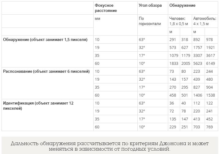 Посмотрите номограммы для сетевого тепловизора AXIS Q1942-E (в метрах) (pdf), чтобы увидеть соотношение между фокусным расстоянием объектива, количеством пикселей, приходящихся на объект (по ширине), и расстоянием до объекта.