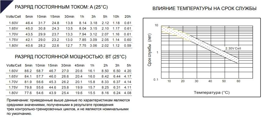- 5-ч. разряд до 1,75 В/эл, Ач: 10,25