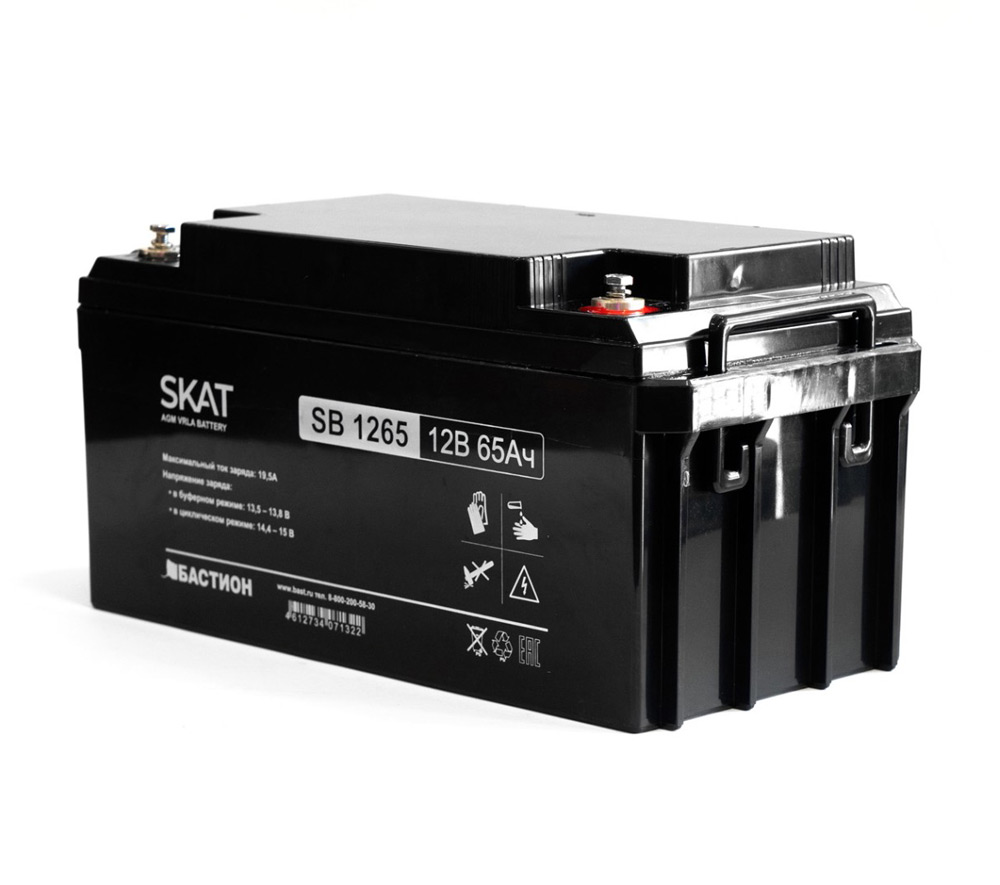 Аккумулятор герметичный свинцово-кислотный необслуживаемый SKAT SB 1265, производимый по технологии AGM с системой рекомбинации газов VLRA, предназначен для использования в составе системы резервного питания.