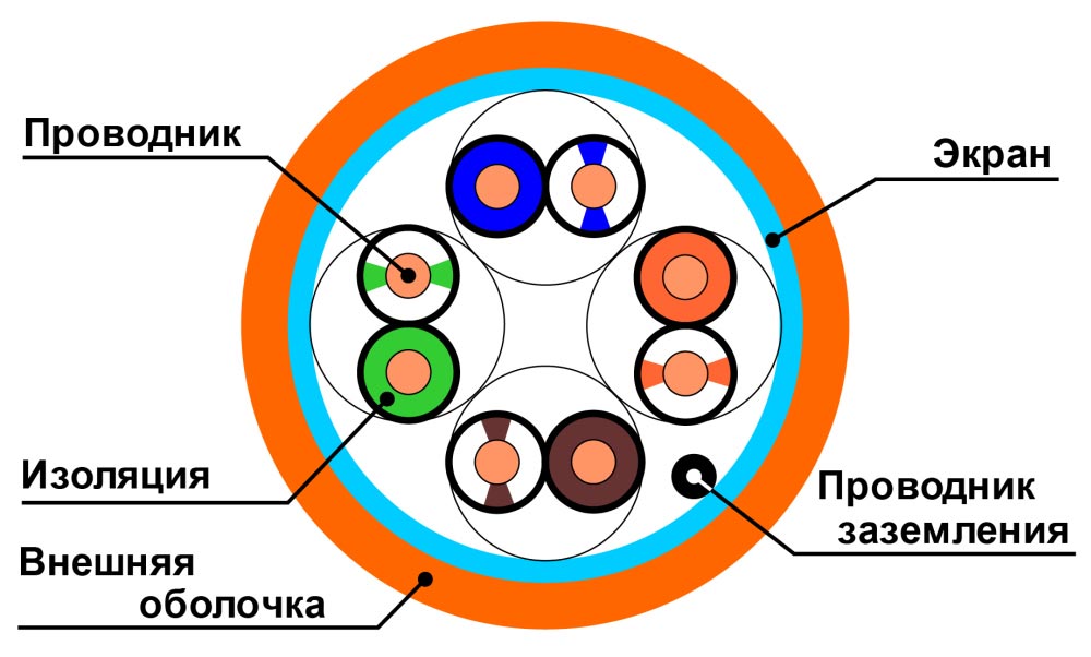 • Диаметр проводника (жилы): 24 AWG (0,52 ± 0,01 мм)
