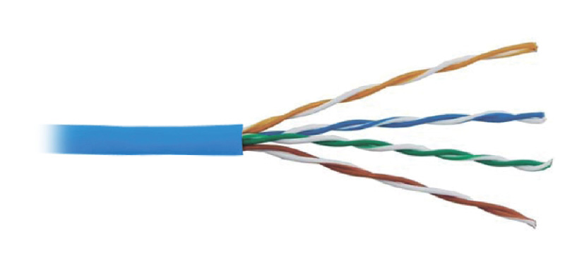 Кабель типа витая пара, неэкранированный, 4 пары, категория 5e, одножильный, медный.