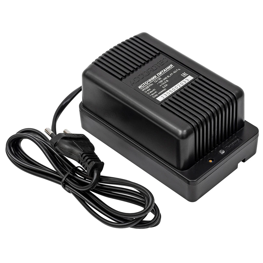 - Выходное напряжение, В (регулировка): 12,6 (регулируется 11 В – 13,5 В ± 5%)
