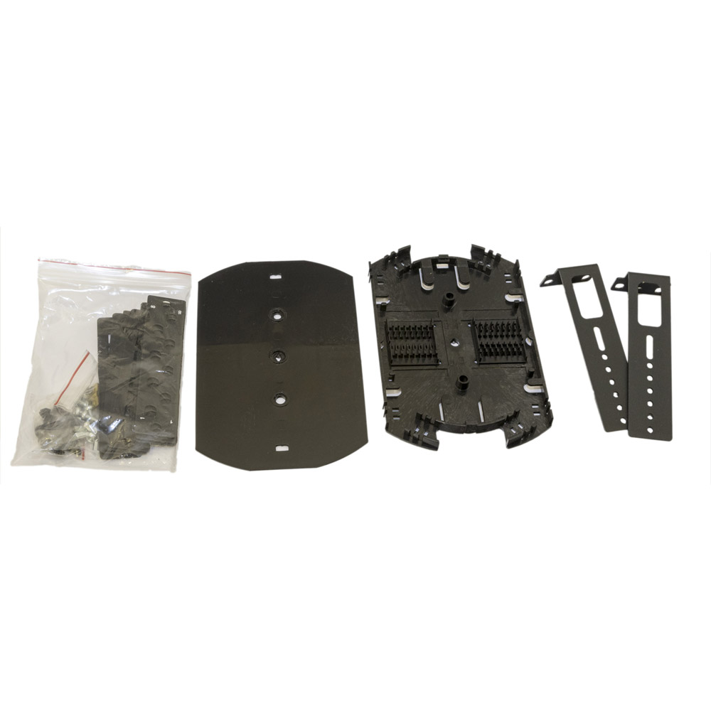 В комплекте каждого изделия имеются сменные планки (панели) размером 130х30 мм для установки проходных адаптеров; сплайс-кассеты для организации волокон. Сменные планки (панели) под проходные адаптеры крепятся пластиковыми фиксаторами на лицевой панели корпуса. Боксы поставляются без пигтейлов и проходных адаптеров.