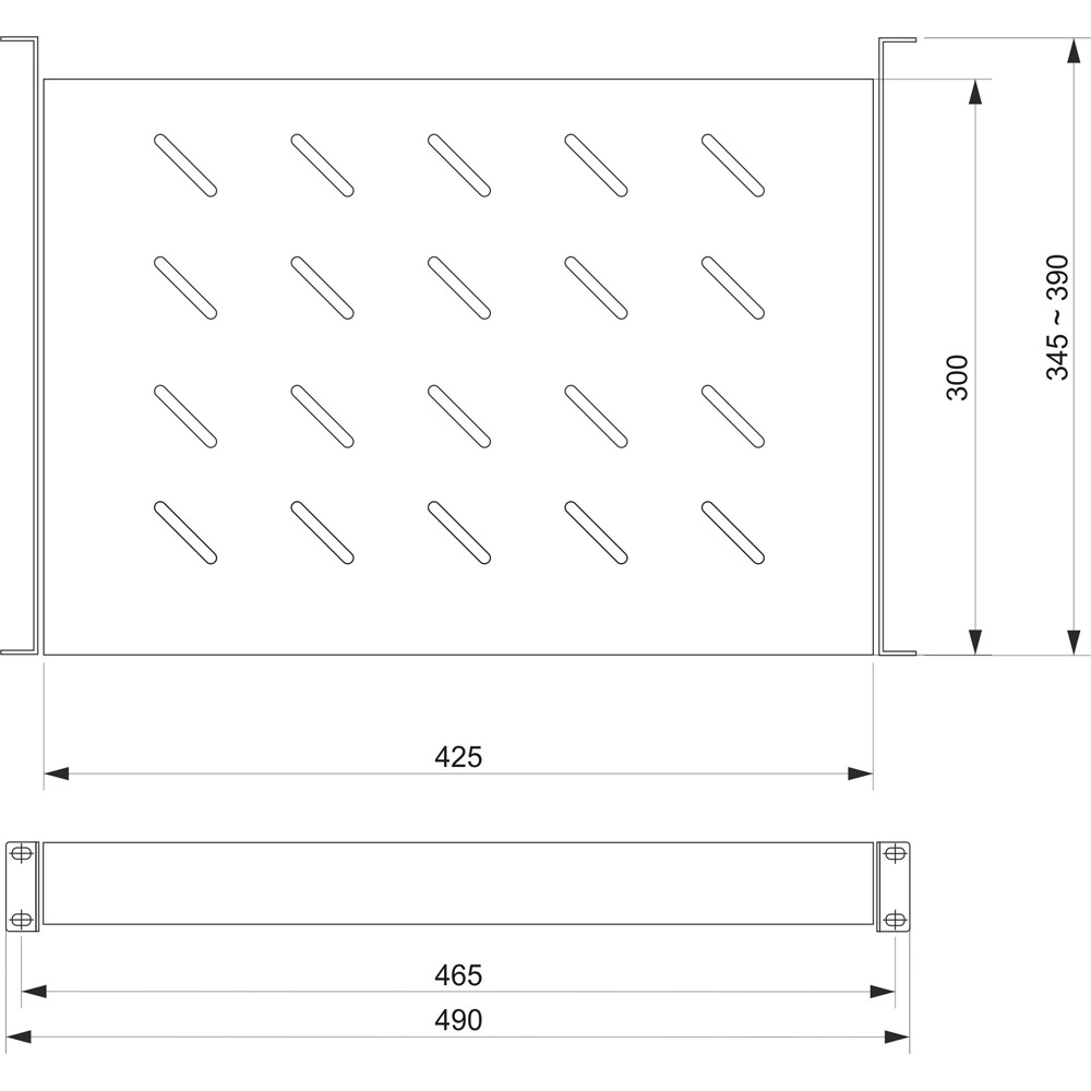 Полка имеет перфорацию, позволяющую охлаждать технологическое оборудование.