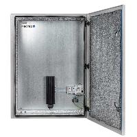 Шкаф представляет собой цельнометаллическую сварную конструкцию, состоящую из корпуса и двери. Внутри корпуса установлена монтажная панель. Основные части электрошкафа изготовлены из стали толщиной 2мм и покрыты порошковой полиэфирной краской по RAL 7035.