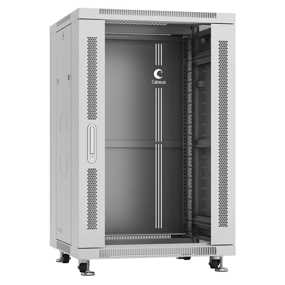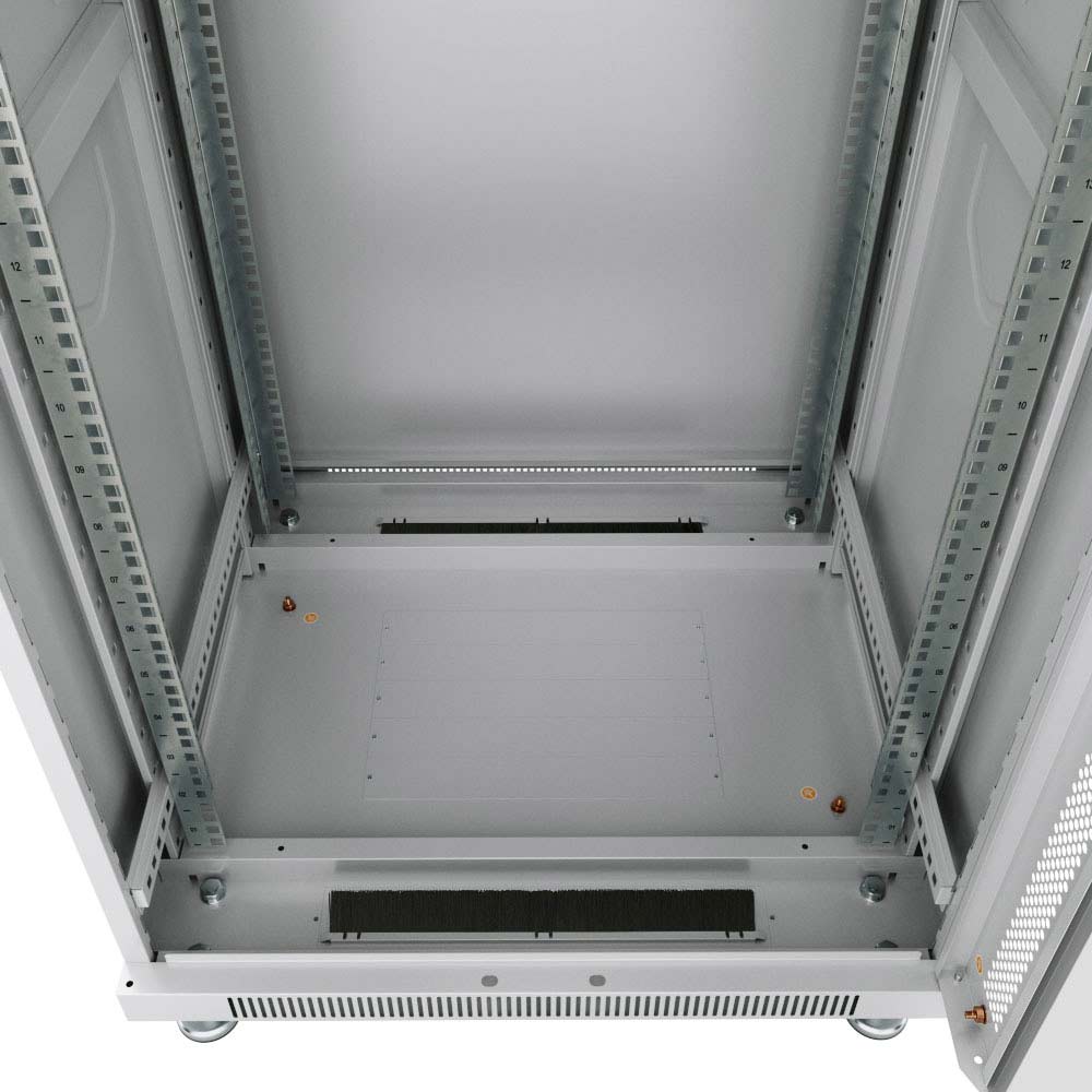 • Шкаф в базовой комплектации оснащен: дном с люками для ввода кабеля, комплектом крепежа для установки оборудования (30шт.), регулируемыми опорами, роликовыми опорами.