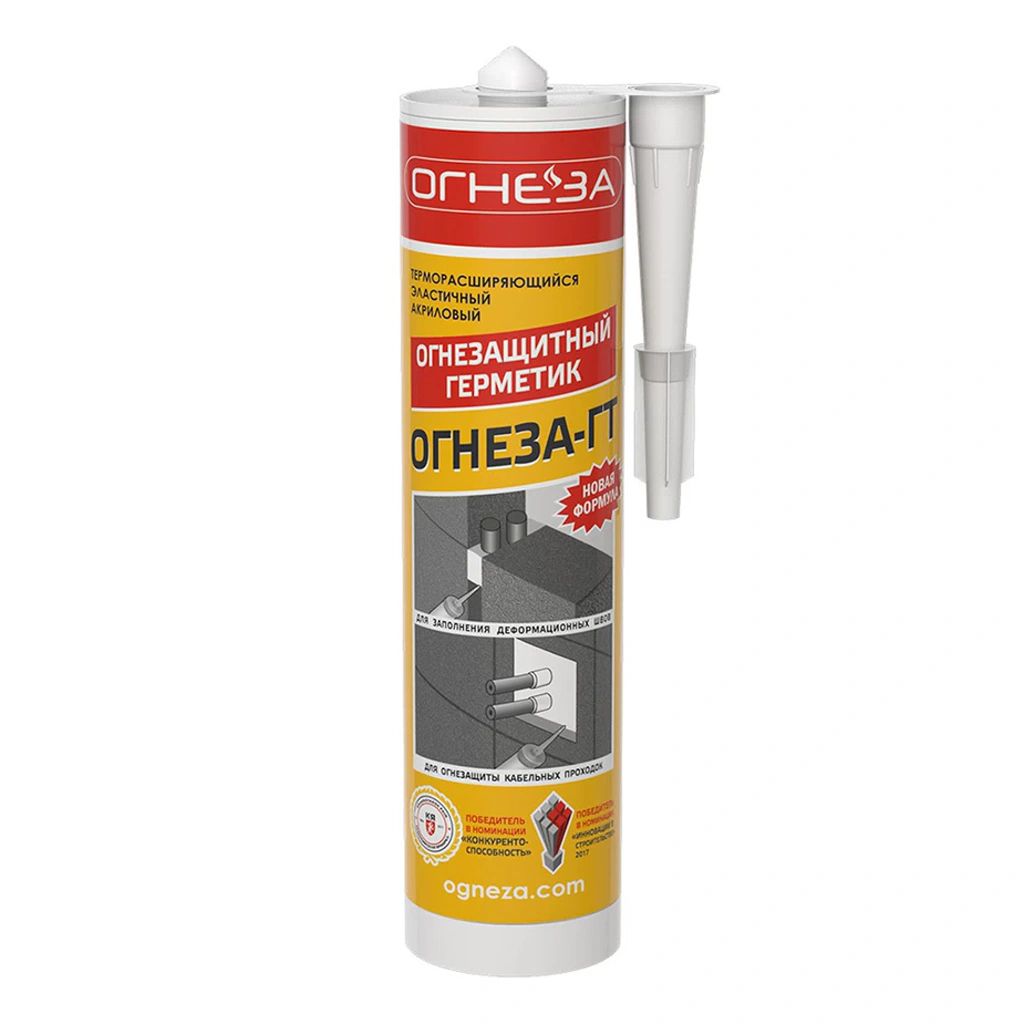 Акриловая пастообразная композиция, предназначенная для заделки мест прохода кабелей через ограждающие конструкции с нормируемыми пределами огнестойкости или противопожарные преграды, препятствующие распространению огня в примыкающие помещения в течение нормированного времени. Герметик применяется для заделки швов и стыков, используется в системе огнезащитных кабельных проходок и др. Специально подобранные вспучивающиеся при повышенных температурах (около 200 С) антипиреновые добавки допускают использование герметика в системе с относительно горючими материалами. При повышенных температурах добавки вступают в реакцию и заполняют (герметизируют) преграды огнеупорным пенококсом с низкой теплопроводностью, тем самым предотвращая проникновение огня и дыма. Высокотемпературный герметик "Огнеза-ГТ" обеспечивает предел сопротивляемости высоким температурам до 2 часов.