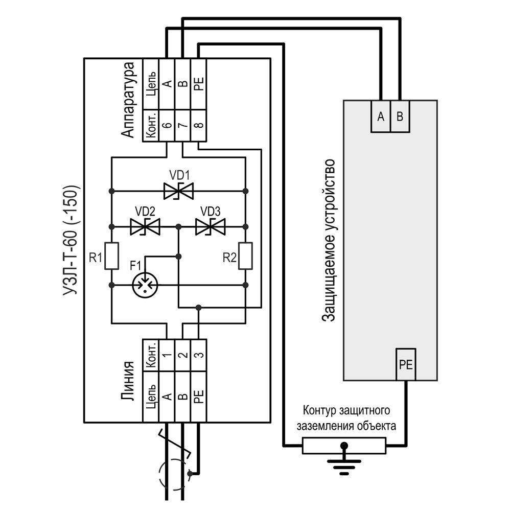 Устройство защиты оборудования телефонии УЗЛ-Т-60 предназначено для защиты от импульсных перенапряжений (грозовых, электростатических разрядов и др.) оборудования связи и телефонии, использующего двухпроводные витые пары для передачи в стандартах xDSL, в пределах 2 ÷ 3 зон молниезащиты (в соответствии с МЭК 61312-1).