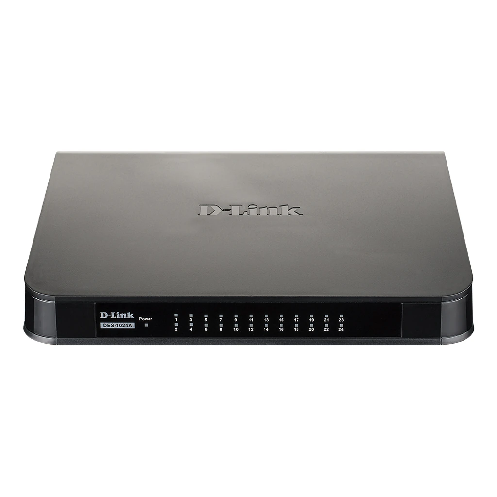 D-Link DES-1024A выполнен в настольном или настенном форм-факторе с возможностью крепления, обеспечивает высокую надёжность и рассчитан на непрерывную эксплуатацию. Его компактный корпус и простота установки (Plug-and-Play) делают его отличным выбором для тех, кто хочет расширить сеть без сложных настроек и вмешательства ИТ-специалистов, сохраняя при этом профессиональный уровень подключения.